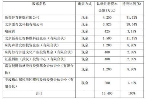 此次融資完成之后,除IDG資本和匯盈博潤(rùn)外,新英傳媒持有新愛(ài)體育35.42%的股權(quán),愛(ài)奇藝持有31.88%的股權(quán),喻凌霄持有3.54%的股權(quán),新英匯智持有12.50%的股權(quán)。武漢當(dāng)代明誠(chéng)的關(guān)聯(lián)方——匯盈博潤(rùn)的跟投。
